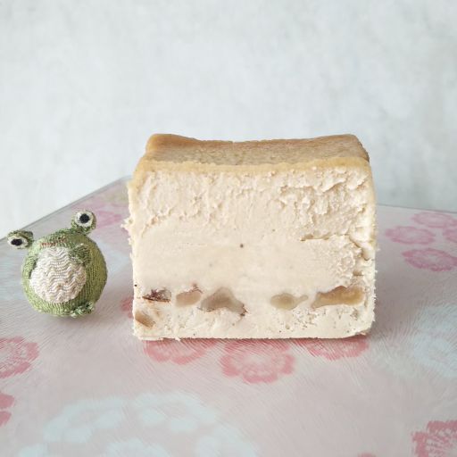 ちゃんと解凍されたケーキはとろけるようにやわらかで、なめらかな口どけ。広がるコーヒーの香り。深煎りでとてもいい匂い。コーヒーとチーズケーキ、喫茶店で別々に頼むことはあっても、合わさったものは食べたことがなかったなあ。北海道産生乳100%のクリームチーズは癖がなく、コーヒーを引き立てつつチーズ自体もおいしい。下の方に入っている大きめのクルミが香ばしく、コリコリと食感もアクセントに。カフェオレなんだけど爽やかな風味が加わって、おいしかったです。ごちそうさまでしたー。