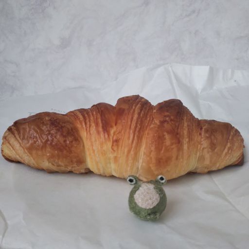 外はサクサク、はしっこカリッ。中はふわっ。気泡が大きくて層が美しい。リベイクしても焼きたてが再現できるのがすごいと思う。国産バターとオリジナルブレンドの粉を使用。色々な種類のクロワッサンが並んでいるけれど、これがシンプルで一番好み。ここのクロワッサンは本当に美味しい。ごちそうさまでしたー。
