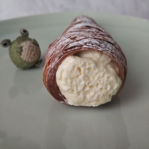 外側がガリガリに近いパリパリの食感で、非常に好み。粉糖がかかっていて、中には自家製ミルククリームがたっぷり詰まっている。クリームはまっしろ。ヴェイノワミルクのクリームと同じかな。ここのミルククリームは他のお店の練乳感強めのクリームとはちょっと違って、重ために感じる。外側がしっかりと固くて食べやすい。よく考えたらパイじゃなくてクロワッサンだものね。軽いと思って口にすると結構ずっしり来る。筒状クロワッサンも定番同様とても美味しかったです、ごちそうさまでしたー。