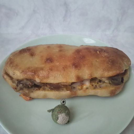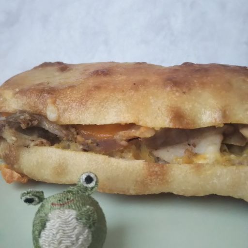 パンがギュッとなってカリカリじゅわぁっとして美味しい。ローストポークにピクルス、チーズ、マスタード。ただひたすら美味しくて、中身をよく確認せず食べ終わっちゃった。甘いの何だろう。さつまいものピューレも入っているらしいので、それかな。おいしかったです、ごちそうさまでしたー。