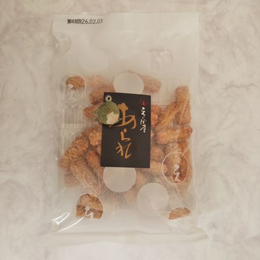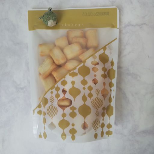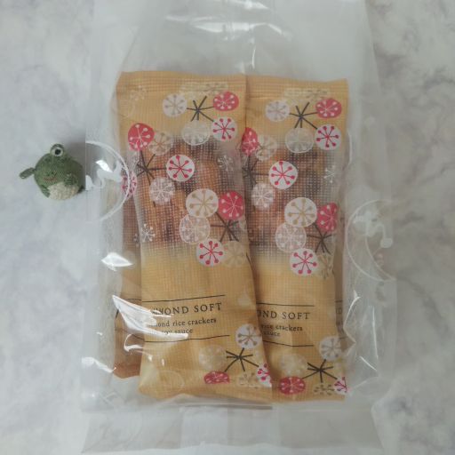日本橋高島屋に福岡のおかき専門店【えくぼ屋】が来ていました。人だかりができていたけれど、買うものは前回気に入ったアーモンドそふと やき塩と決めていたので、すぐにお会計へ。そんなとき目に入ったのがオレンジ色のおたのしみ袋。甘いざらめのおかきが入っていたので、ざらめ好きのために一つ買ってみました。