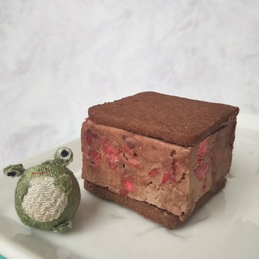 サクサクのショコラサブレ。カリカリに近いかな。ぷつぷつは何だろう。フリーズドライいちごの入ったストロベリーショコラバタークリームをサンド。チョコが濃いけど、なめらかでイチゴとも合う。