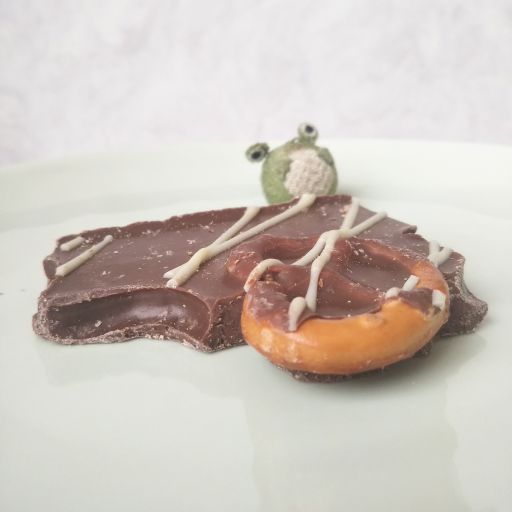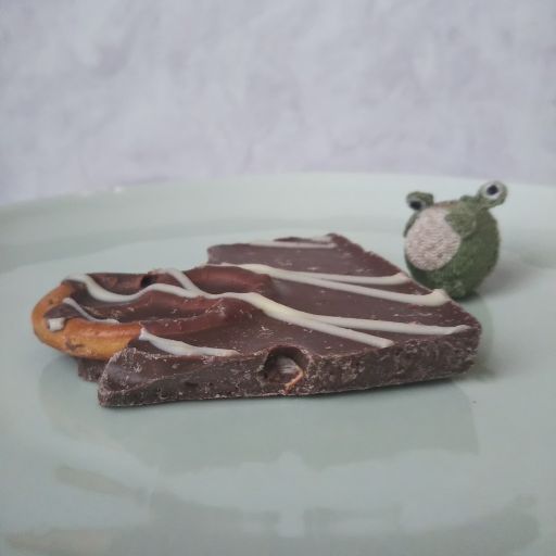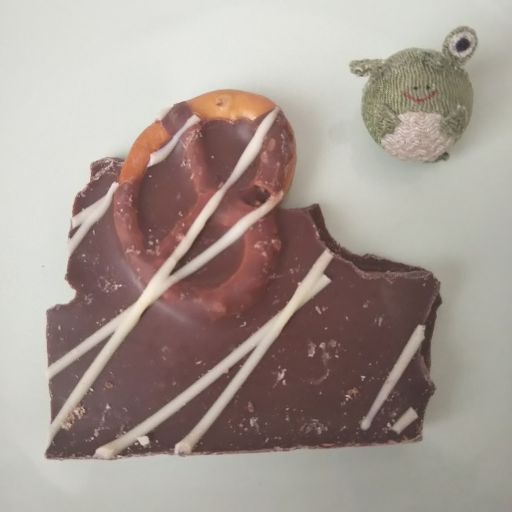 プレッツェルがしっかりと塩気があって、ミルクチョコと合わさると甘じょっぱくて美味。チョコはほんのりキャラメル風味なので塩気と自然と馴染んでいる。プレッツェルのザクッとした食感もいいので、つい手が伸びる。すぐなくなってしまいそう。おいしかったです、ごちそうさまでしたー。