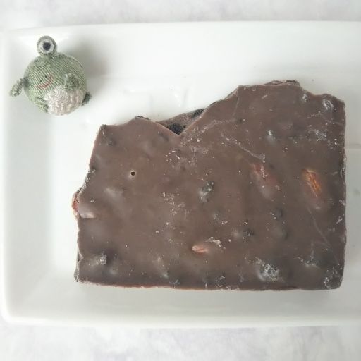 チョコに入っているアーモンドやココアクッキーで表面がボコボコしている。