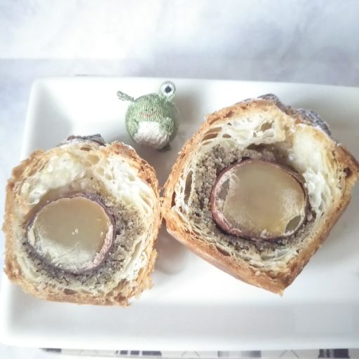 渋皮のついた栗が丸ごと一粒どーんと入っている。その周りは紅茶風味のアーモンドクリーム。最初、紅茶だと思っていなかったので驚いたけれど、これがとてもよく合う。しっかり焼かれているけれどサクサクのパイに包まれていて、粉糖がふってある。ほっくりとした栗とアーモンドクリームのバランスがよく、おいしかったです。ごちそうさまでしたー。