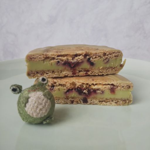 サブレはぷつぷつ食感で、しっとりほろっとしている。中に挟んだガナッシュはピスタチオが濃厚。ホワイトチョコのミルクのコクがあって美味。ベリーの味も濃い。濃厚でどっしりとしたお菓子なのだけど、口どけがよくいつの間にか消えていく感じ。おいしかったです、ごちそうさまでしたー。