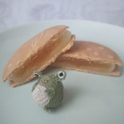 まずは八朔のよい香り。お煎餅で求肥を挟んだお菓子、なのだけどお煎餅とは思えないしっとり感でやわらかい。求肥には八朔ピューレが練りこんであり、真ん中にはジャム。このジャムは八朔の果肉と皮をまるごと使用してあり、爽やかに甘く、そしてほろ苦い。八朔はこのほろ苦さがいいねー。もちもちの求肥で、おいしかったです。ごちそうさまでしたー。