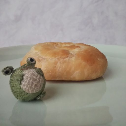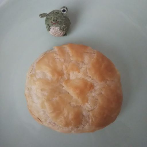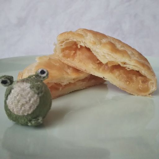 ぽってりとした見た目のパイ。サクッとしてしっとりめのパイに包まれているのはりんごフィリングとカスタード。甘酸っぱいりんごにカスタードクリームが主張していて、どこか懐かしい味わい。