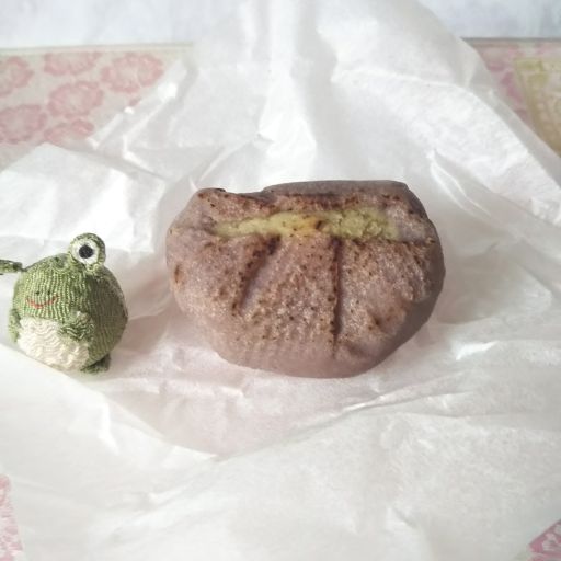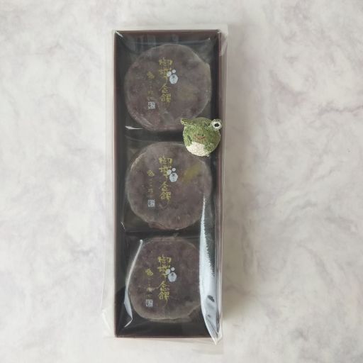 薄紫色のこし餡の中に栗きんとんがたっぷり包まれている。北海道十勝産の小豆を使った皮むきこし餡は甘さあっさり。栗と砂糖のみからつくられた栗きんとんのおいしさをいかしている。なめらかで上品な甘さ。火にかざして焦げ目をつけることで焼き栗のイメージに。栗きんとんたっぷりでうれしい和菓子。