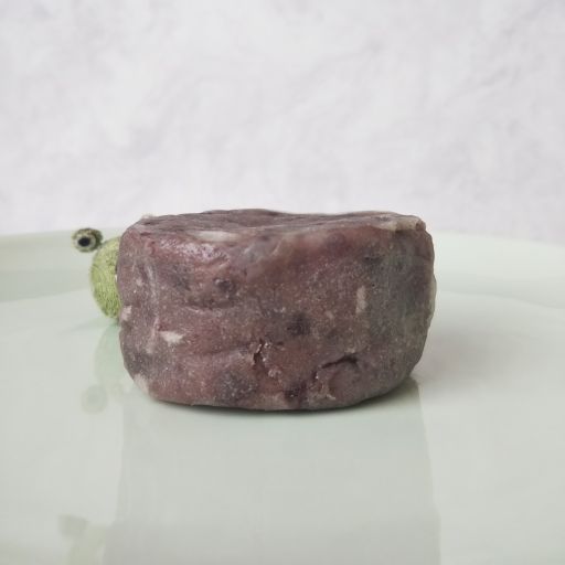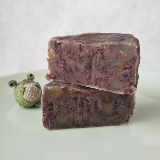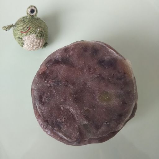 北海道十勝産かほり豆を名水百選に選ばれた猿庫の泉の湧き水で炊き上げた餡。伊豆大島産自然海塩である海の精を少量加えている。小豆の食感に加え、国産の栗を粗く砕いた甘露煮も粒の食感がしっかり。こし餡も栗もなめらかな甘さ。