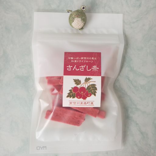 ドライフルーツが好き。中でもサンザシは甘酸っぱくてかなり好きなのだけれど中国産ばかりで、まあサンザシ自体が中国原産だから仕方ないかと思ってきた。ところが長野【双松庵唯七】から届いたパンフレットを見ていたらなんと国産のサンザシがあるではないか!!山査子は自社農園がある南信州高森町の地場産品なのだそう。